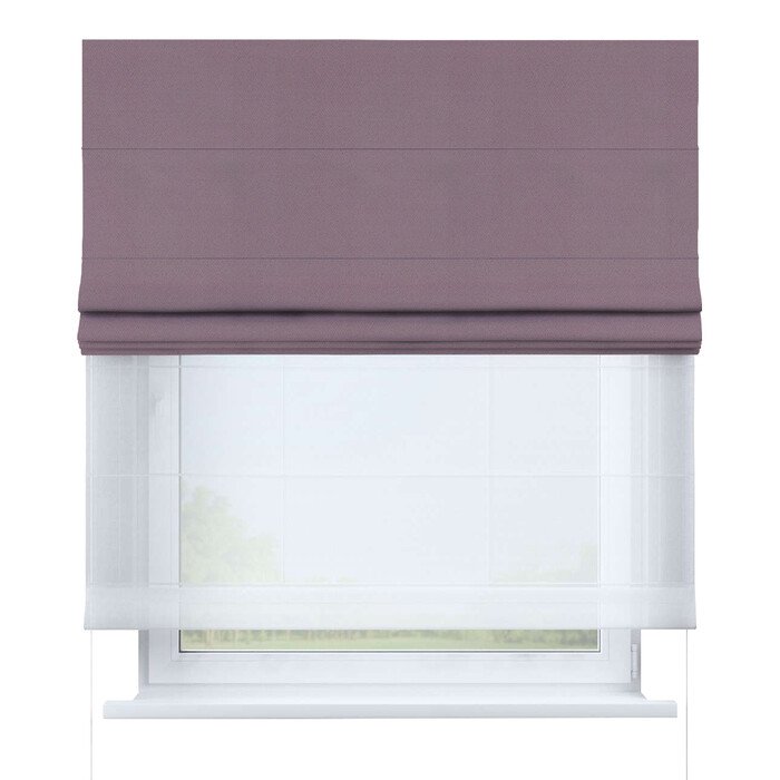 Состоят из двух тканей - основная ткань и тюль, со специальным карнизом с двумя механизмами управления: цепочкой или веревочкой