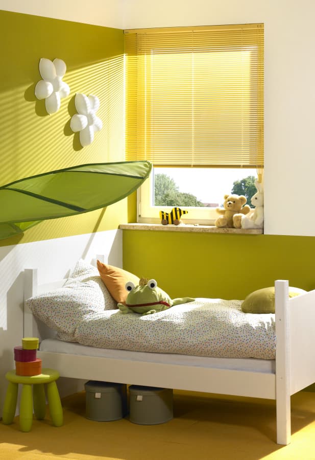 - Регулировка света. Жалюзи позволяют гибко управлять уровнем освещения в комнате. Можно выбрать жалюзи для детского сада и дома типа блэкаут или «день-ночь», чтобы полностью затемнить пространство для дневного сна или создать мягкое освещение в течение дня.